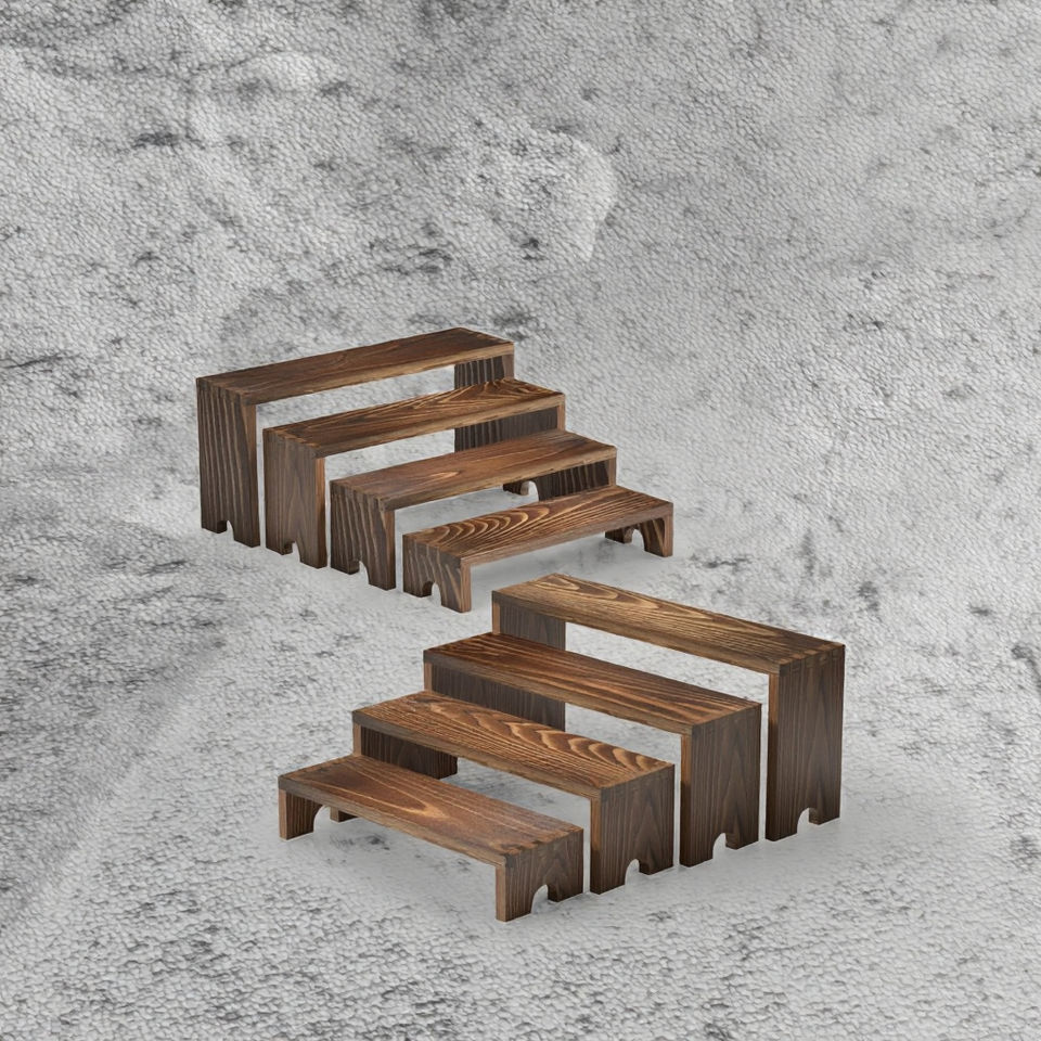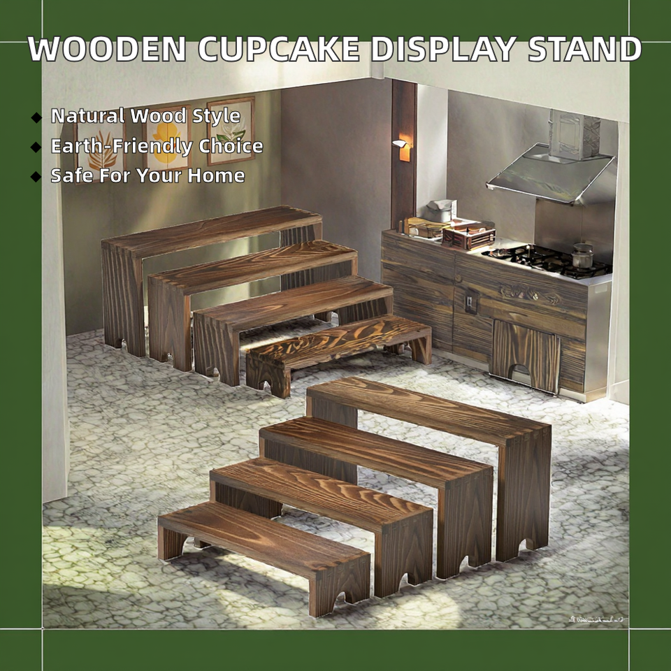 Brown Wooden Tiered Riser Display Stands Set 4 Stackable Oven Safe Cupcake Stand Farmhouse Decor Non-Toxic Eco-Friendly Dessert