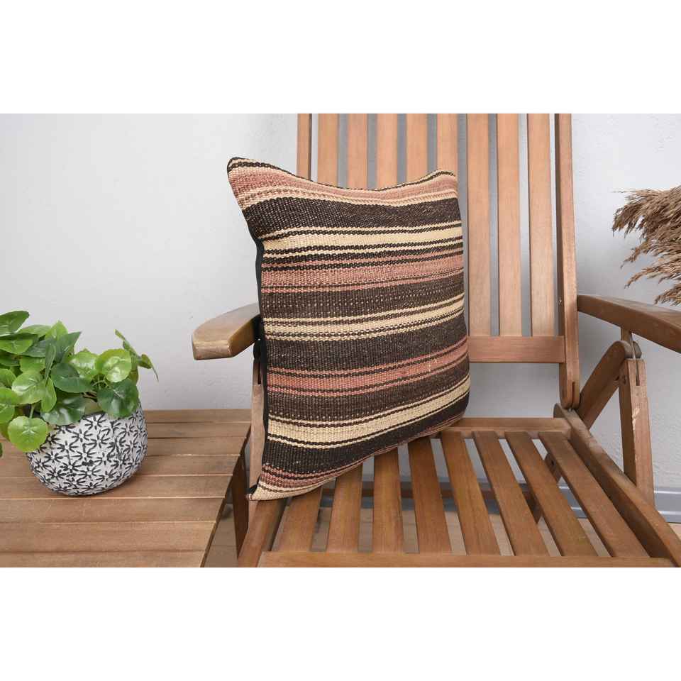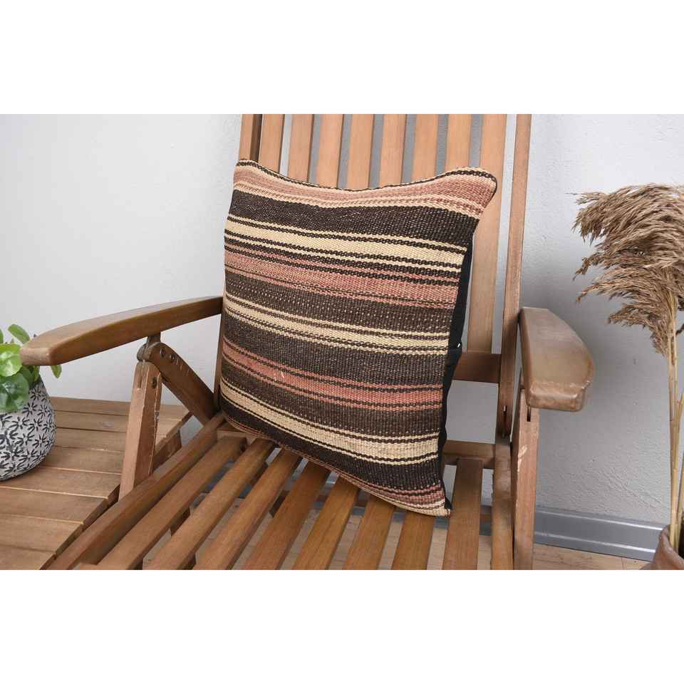 Brown Wool Kilim Pillow 18x18 Inch Luxury Fluffy Patterned Cushion Woven Vintage Square Print Feather for Bedding Christmas