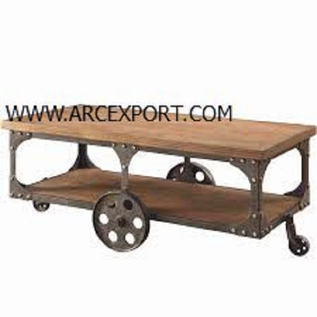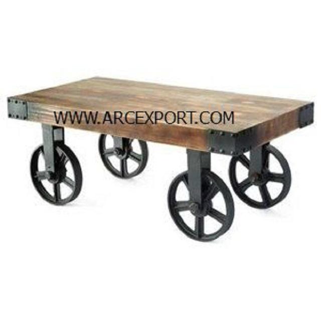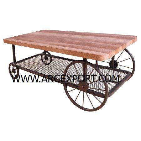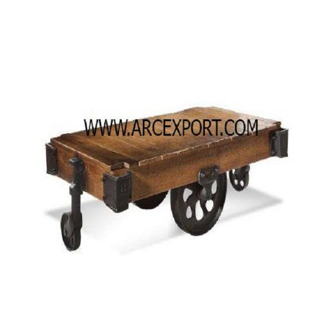 Brown and Black Color Wheels Wooden Cart Table Decoration Fancy Antique Simple Design Decorating Cart Table Supplies