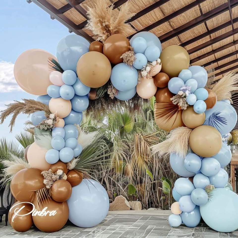 Brown and Blue Balloon Garland Double Stuffed Nude Tan Light Blue Beige Balloon Latex Neutral Balloon Arch Kit