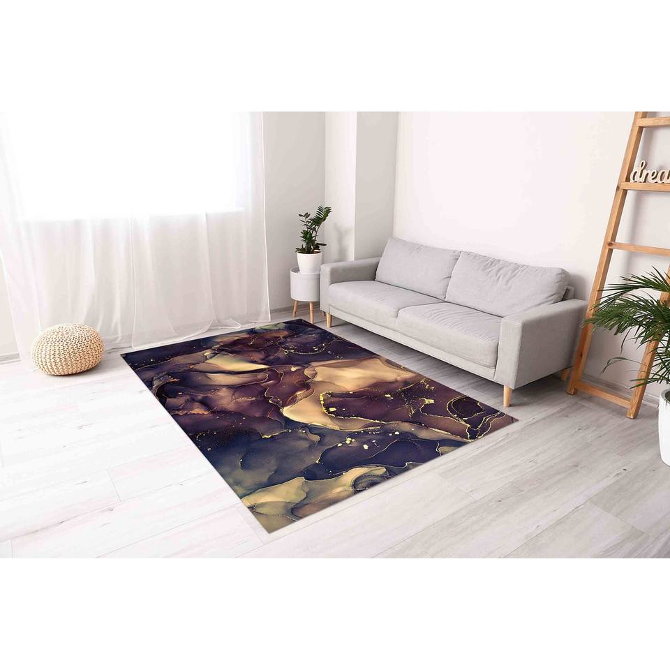 Brown and Gold Marble Rug: Abstract Shimmery Design,Chenille Rug