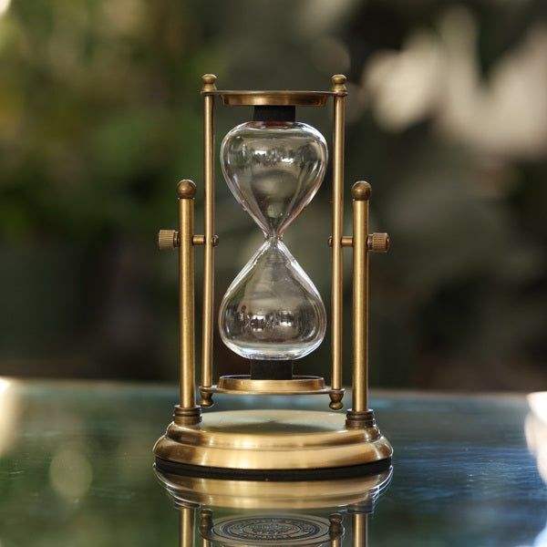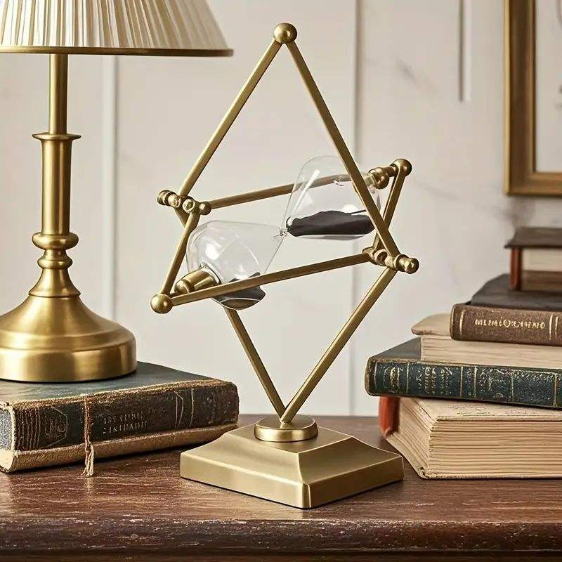 Brushed Metal Handmade Hourglass Timer Textured Desk Table Decor Eco-Friendly Modern Design Sand Holder Accent Art