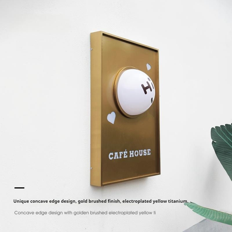 Brushed Plated Gold Titanium Concave Edge Projection Light Box 5000 Lumens High Brightness Waterproof LED Rectangle Hanging