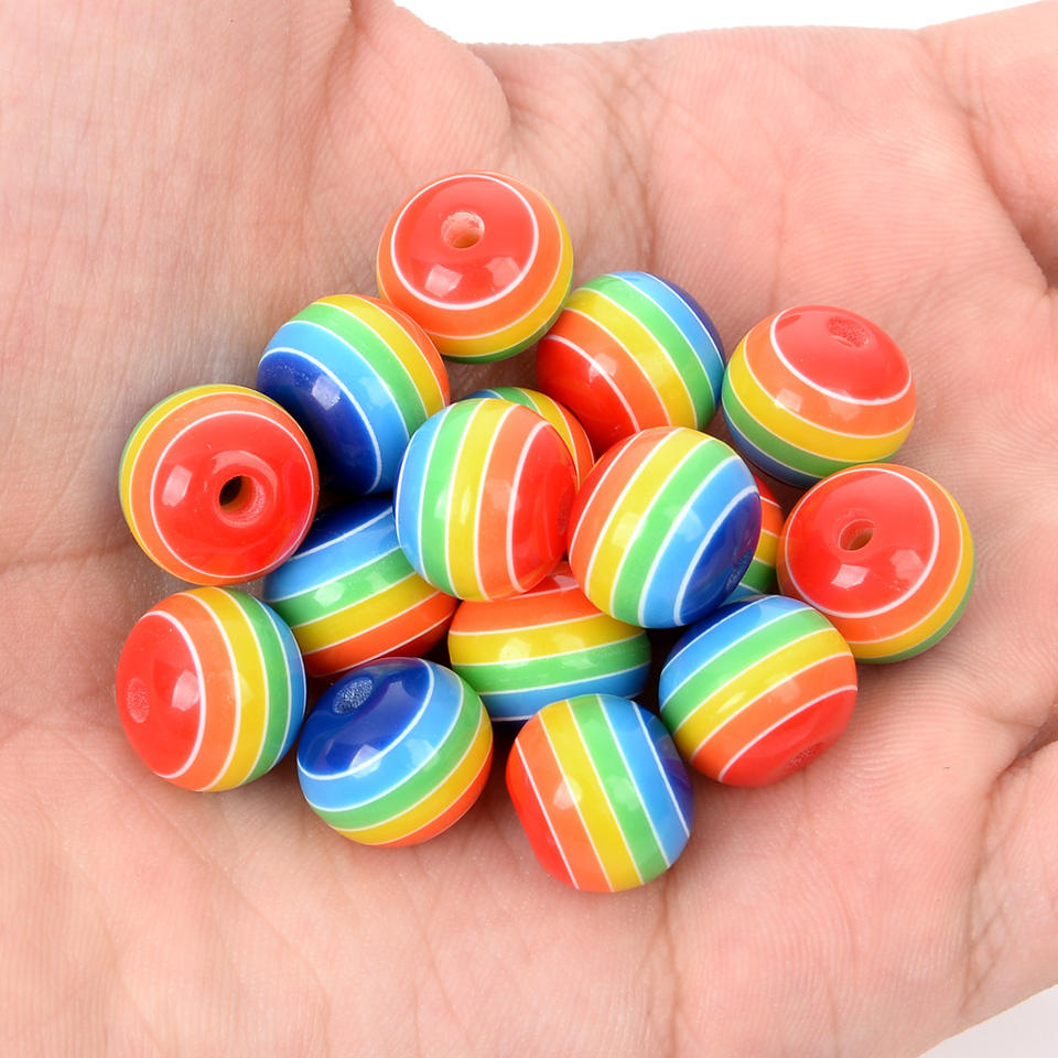 Bubblegum 8mm Rainbow Stripes Loose Round Plastic Resin Beads for Jewelry Making DIY Bracelets Necklace Accessories