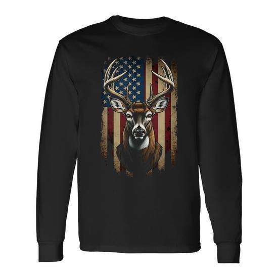 Buck Stag Deer Head Antlers Long Sleeve T-Shirt Hunting Outdoor All Seasons Cotton One Size