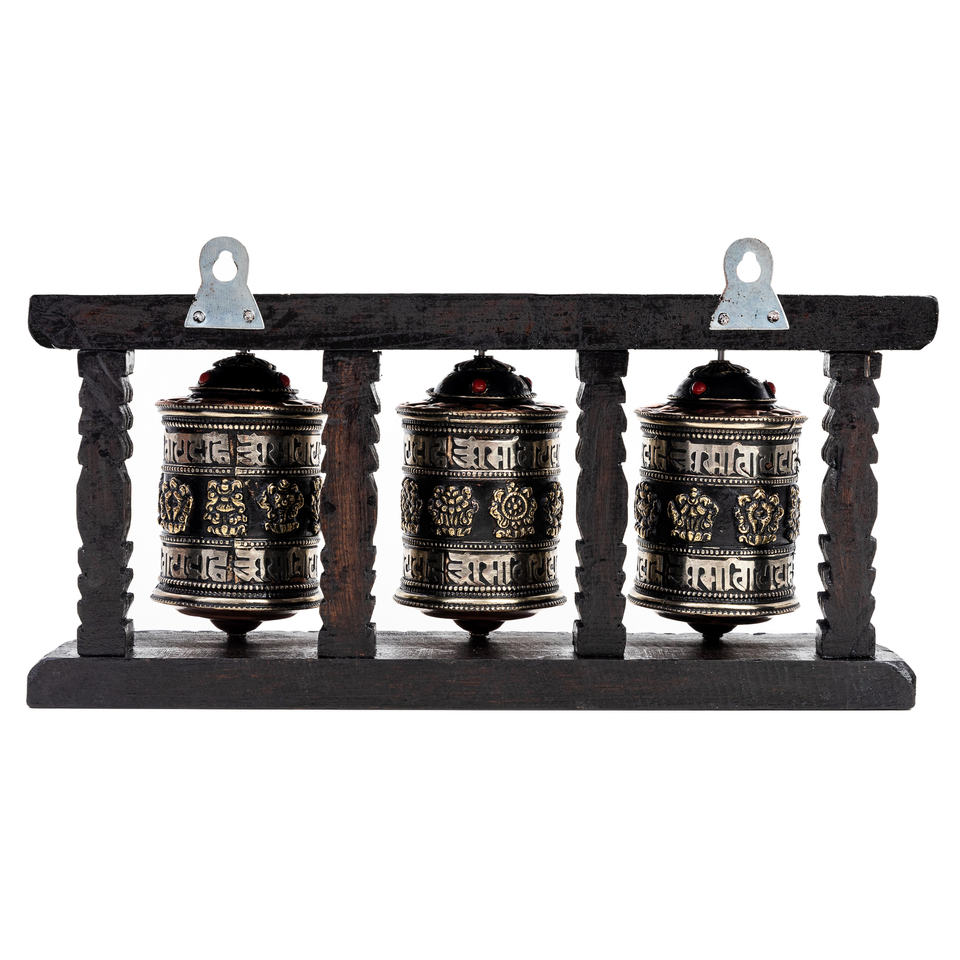 Buddhist Tibetan Brass Prayer Wheel with Engraving and Digital Printing-Handcrafted Spiritual Meditation Collectible Decor