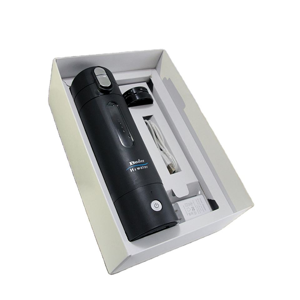 Buder Hydrogen-Producing Titanium Water Bottle USB Ionizer 350ml 0.8-1.0 PPM Hydrogen 50 GPD Flow Rate for Car RV Hotel