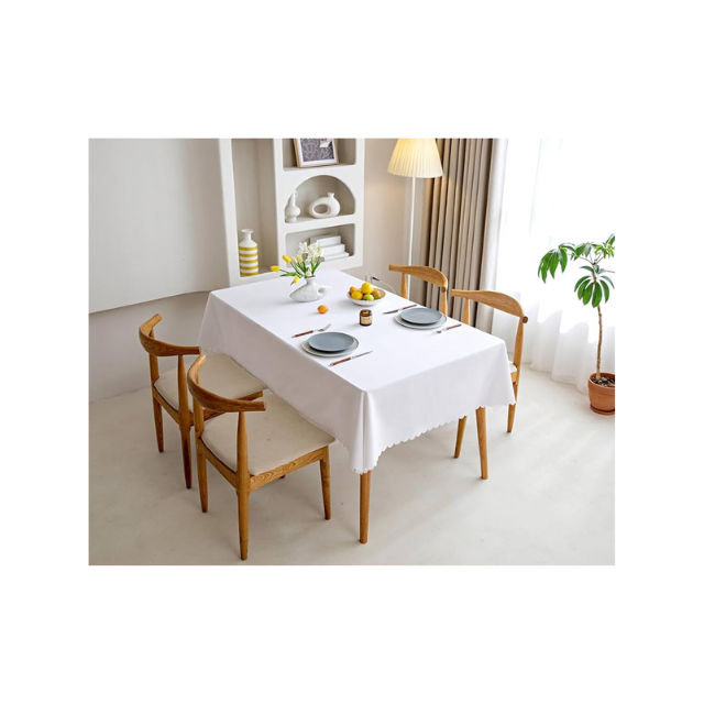 Budget Friendly Branded Biodegradable Lightweight 100% Cotton Embroidered Red 6ft Tablecloth for Family Dinners Formal Gathering