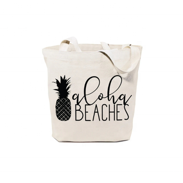 Budget Friendly Lightweight Cotton Tote Bag Aloha Beach Embroidered Indian Custom Reusable Handmade Minimalistic New Arrival