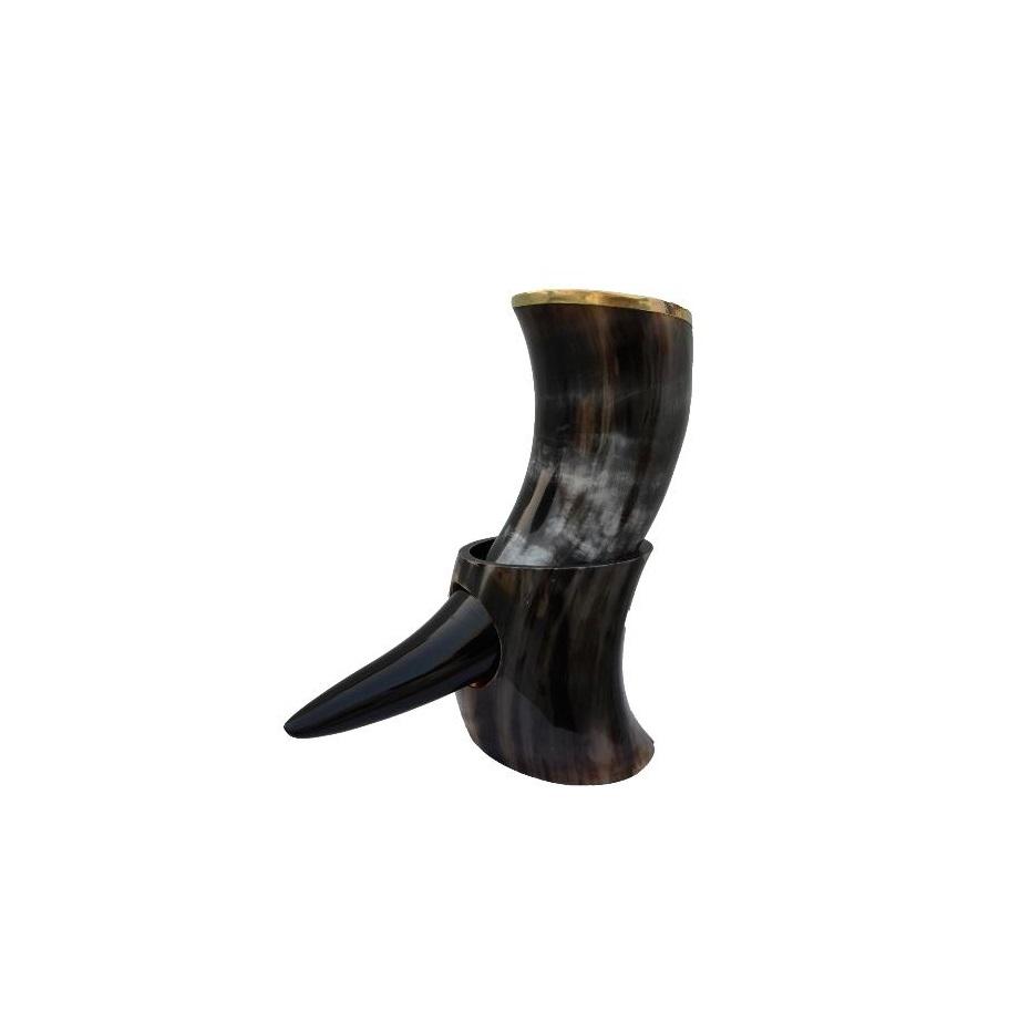 Buffalo Drinking Horn With Horn Stand Standard Quality Hotel Bar Real Cow Drinking Horn Wedding Party Use Customized Design