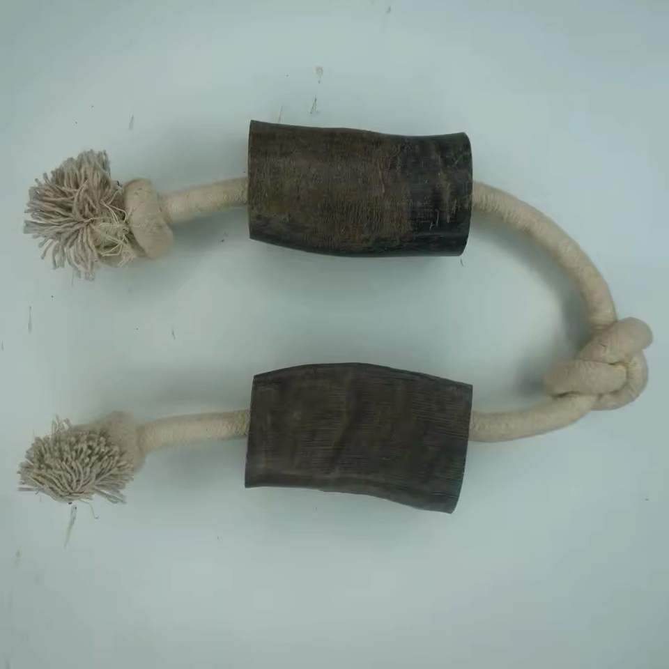 Buffalo Horn And Rope Dog Chew Toys Eco-friendly Plush Rope Toy With Horn Sections