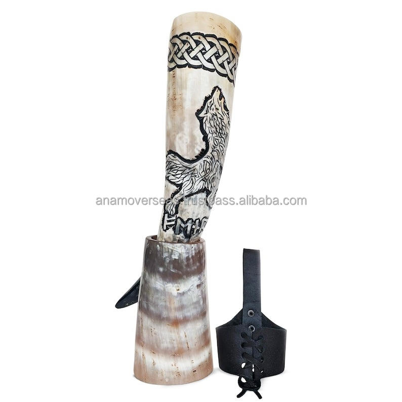 Buffalo Horn Drinking Horn with Stand Handmade Viking Style Mug