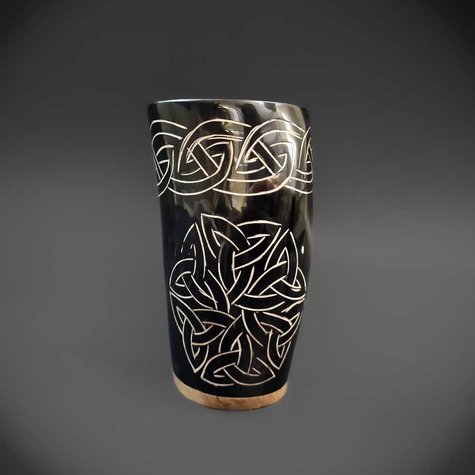 Buffalo Horn Mug Large Size 700ml Tankard with Handgrip Pattern for Coffee Drinking by Vikings