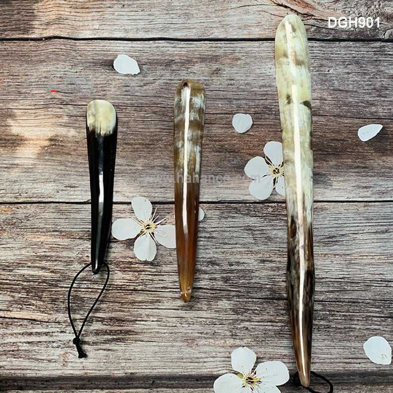 Long-Handle Shoe Horn with Ox Horn Design for Wearing Shoes Made of Plastic Metal Wood Brass