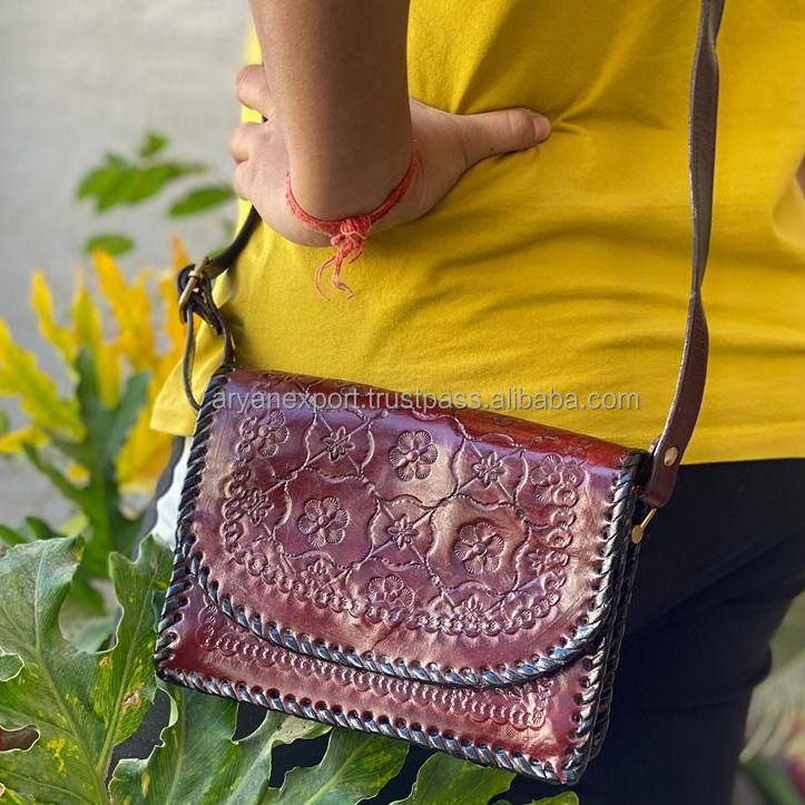 Buffalo Leather Handmade Tooled Bags Handbag Vintage Sling Bags Women Leather Bags