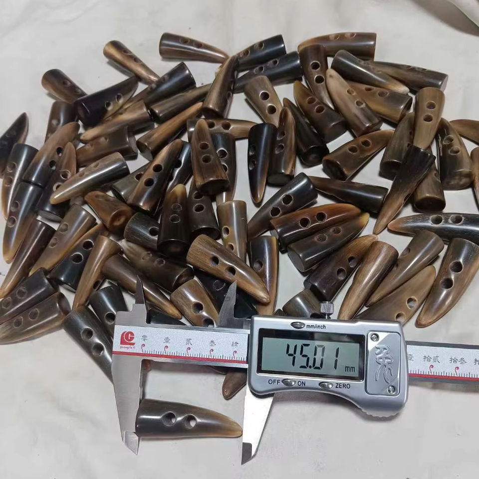 Sustainable 2-Hole Polish Buttons Eco-Friendly Buffalo Natural Skin Horn Toggles Carved Shank Flat Coat Decorations for Washable