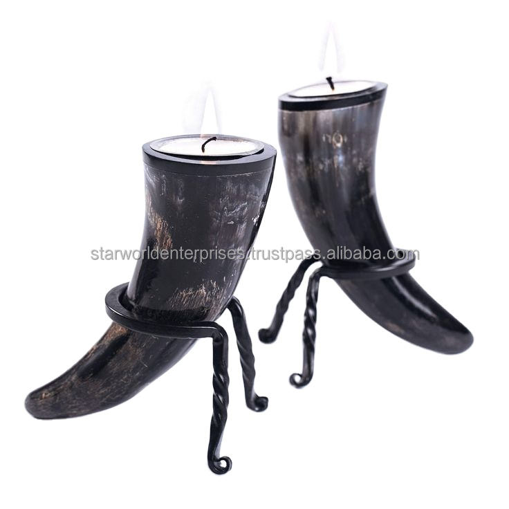 Buffalo Ox Handmade Decor Horn-Shaped Candle Stand Other Candle Holders Lanterns & Jars Made in India