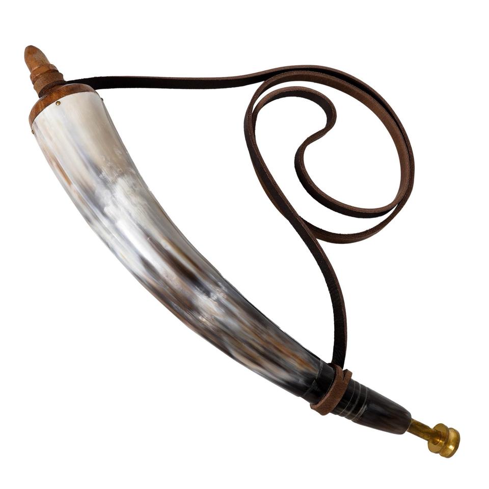 Buffalo Powder Horn Handicraft Natural Color Horn Real Horn for Leather Belt with Brass Tip and Wood Lid