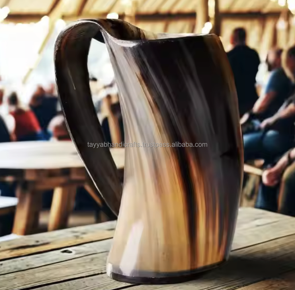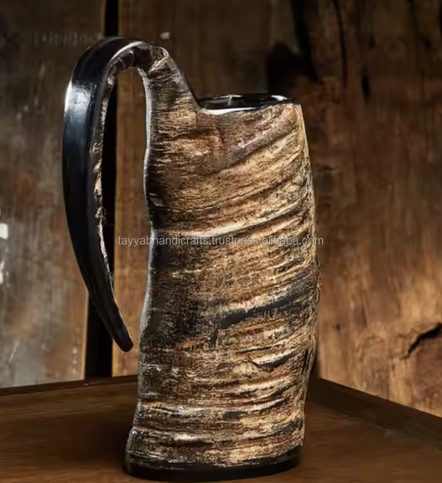 Buffalo-Style Viking Drinking Horn Mug Natural Polished Animal Engraved for Christmas Decor Personal Use Crafted Authenticity