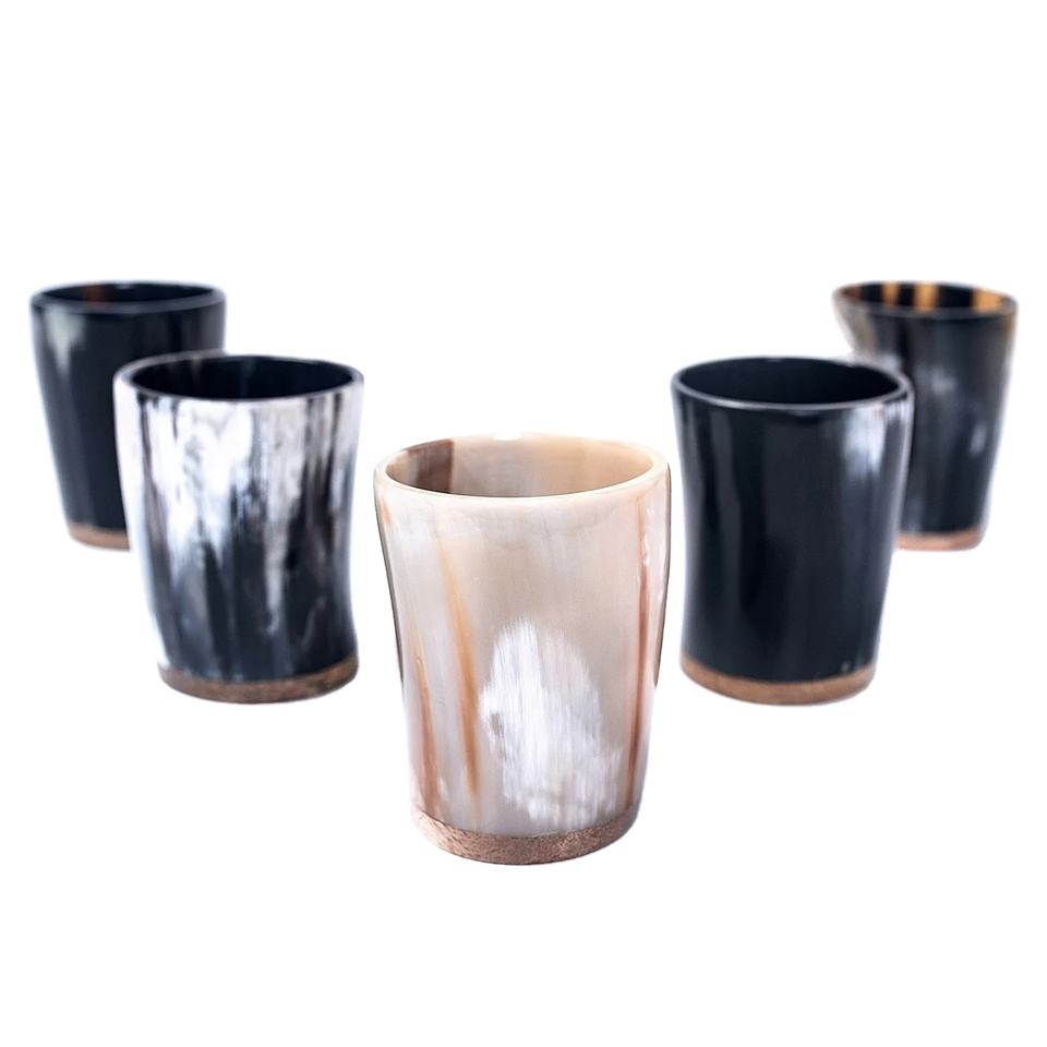 Buffaloes Natural Color Buffalo Horn Decorative Beer Mug Viking Drinking Horn Tankard Mug/Cup Carved with Wooden Base