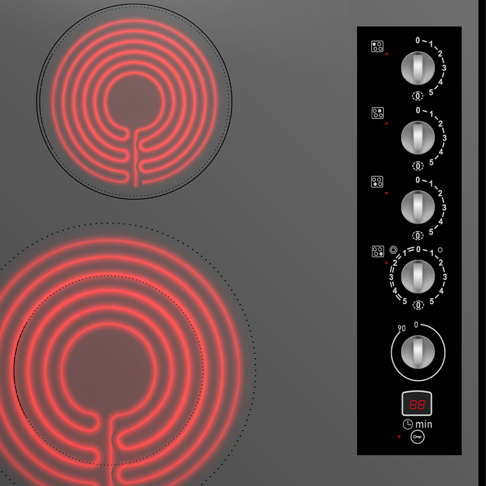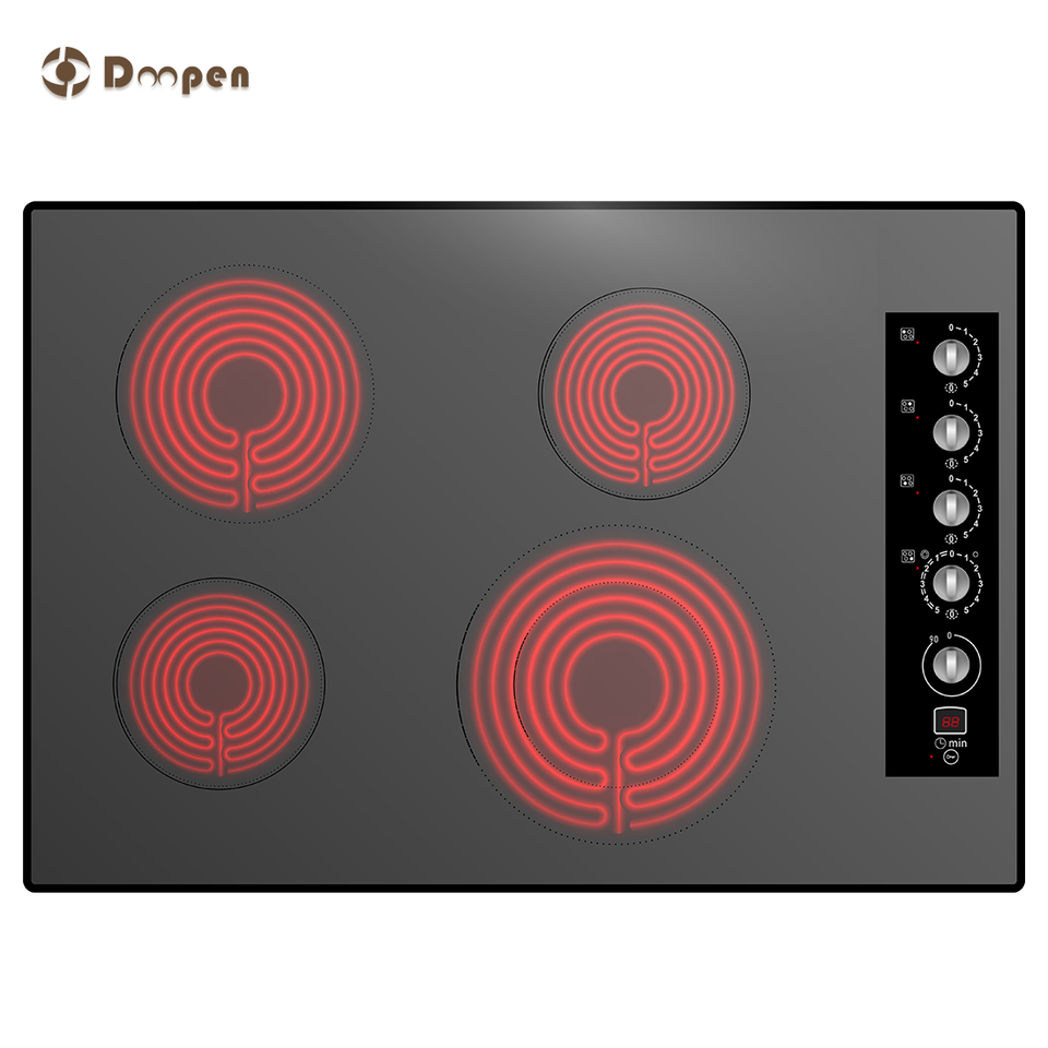 Built in Electric Cooktop with 4 Elements Flat Cooking Surface Metal Rotary Dial Controls and Dual-Circuit Zones