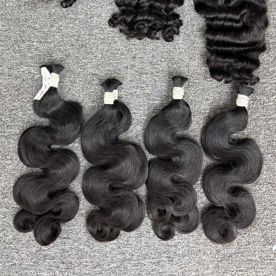 Bulk 100% Unprocessed Vietnamese Body Wavy Curly Hair Custom Weaving Double Drawn Ends Boho Braids Wig Hair Extensions