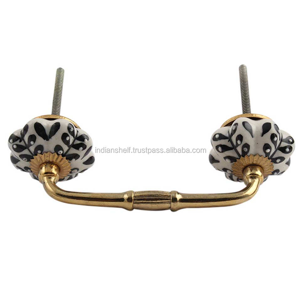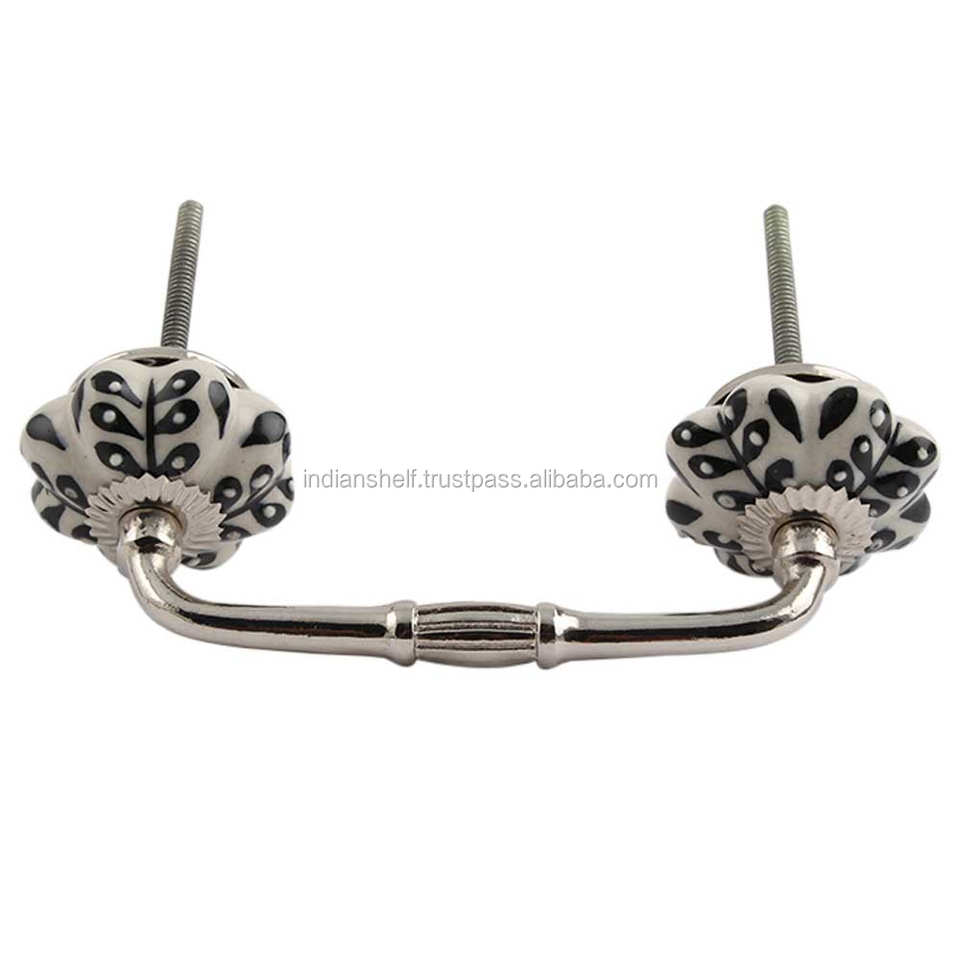 Bulk Cabinet Handle Handmade Ceramic Black Leaf White Antique Design Wholesale Dresser Lot Vintage Drawer Cabinet Door Pull