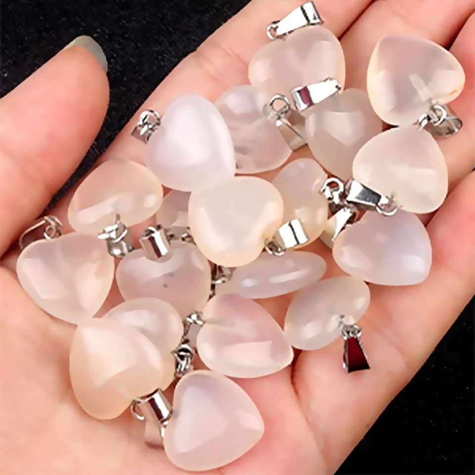 Bulk Heart Shape 925 Sterling Silver White Agate DIY Gemstone Agate Pendant Necklace Jewelry