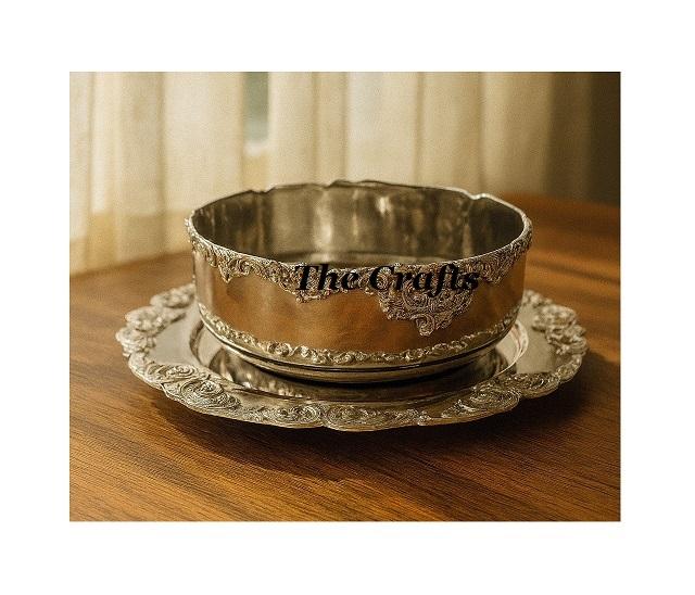 Bulk Iron Chocolate Bowl With Plate Polished Silver Color Customizable Iron Tableware Serving For Wedding