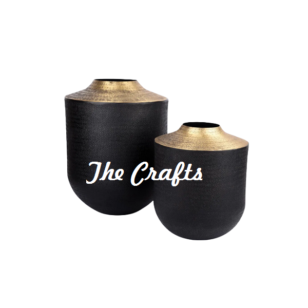 Bulk Metal Gold And Black Color Flower Pot Set Of Two Different Size And Shape Flower Vase For Wedding Use