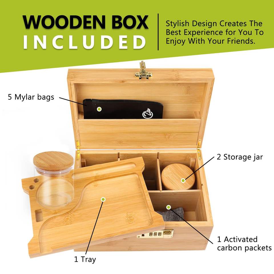 Bulk Multi-Function Combination Lock Black Wooden Stash Box High Quality Clamshell Packaging for Storing & Securing Smoking Tool