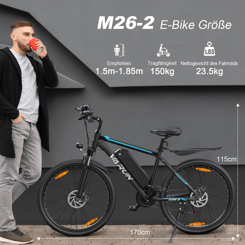 Bulk Order OEM/ODM VARUN 60km Range Mountain Electric bike M26-2 26" Ebike 3-Level Assist Off-Road Commute Men EU In-Stock