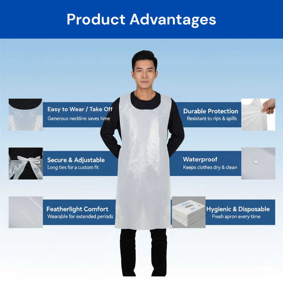 Bulk Pack Disposable Waterproof PE Apron for Medical Healthcare and Industrial Safety Use Environments