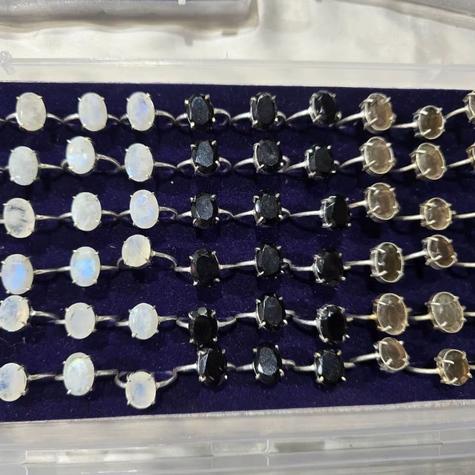 Bulk Pack of Mixed Natural Semi Precious Stone Rings Wholesale Jewelry Lot for Retailers Oval/Square Cut Polished Eco-Friendly