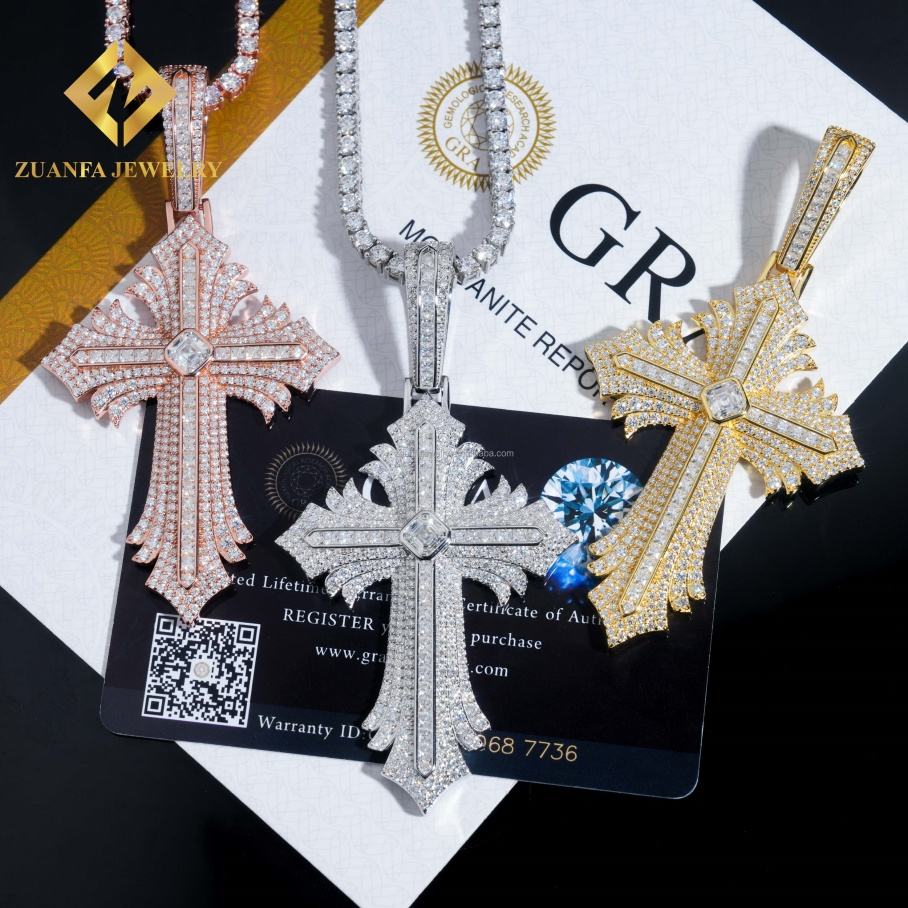 Bulk Stock Drop Shipping Hot Selling Product Iced Out Man Hip Hop Religious VVS Moissanite Cross Pendant Necklace With GRA