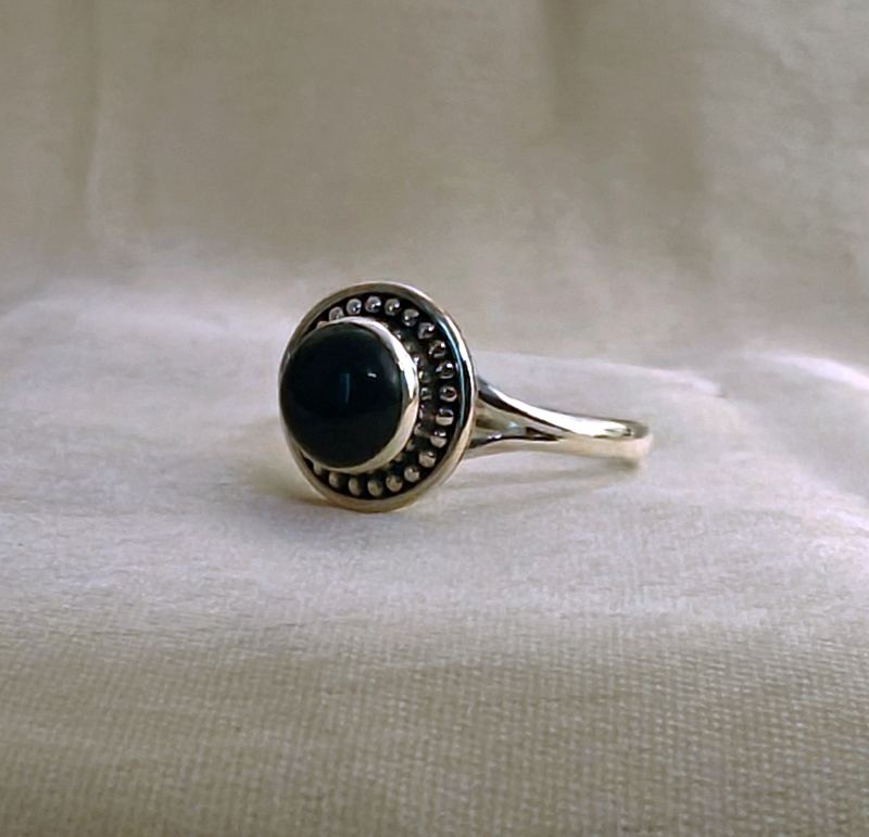 Bulk Supplier at Factory Price Sterling Silver 925 Natural 6 mm Round Shape Black Onyx Stone Birthday Ring for Women & Girls