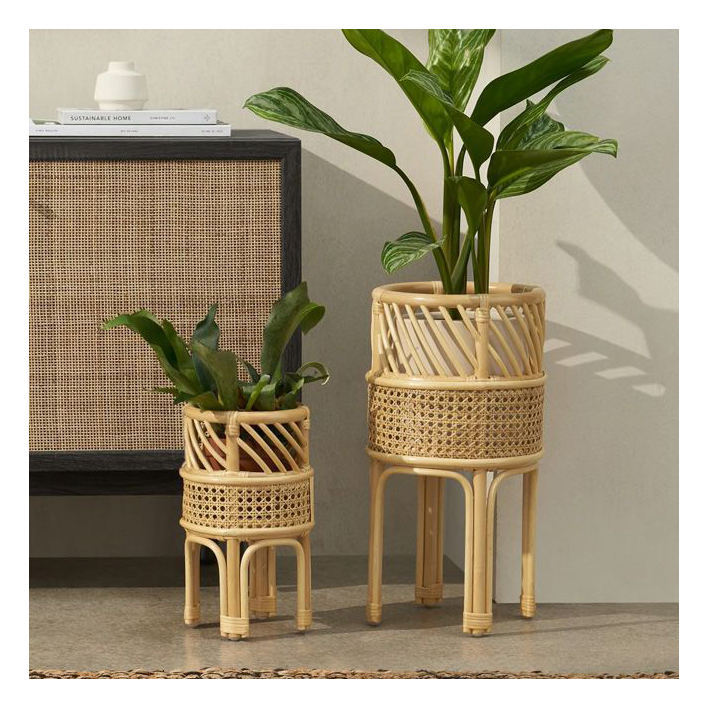 Bulk Supply Handwoven Rattan Eco-Friendly Plant Holder with Stand for Home & Garden Decor Durable Export Quality