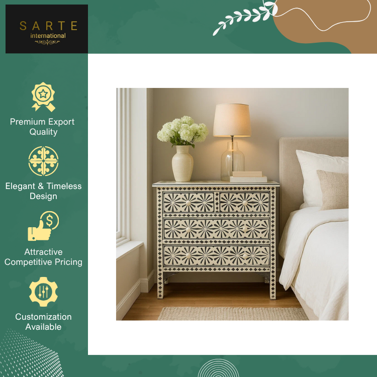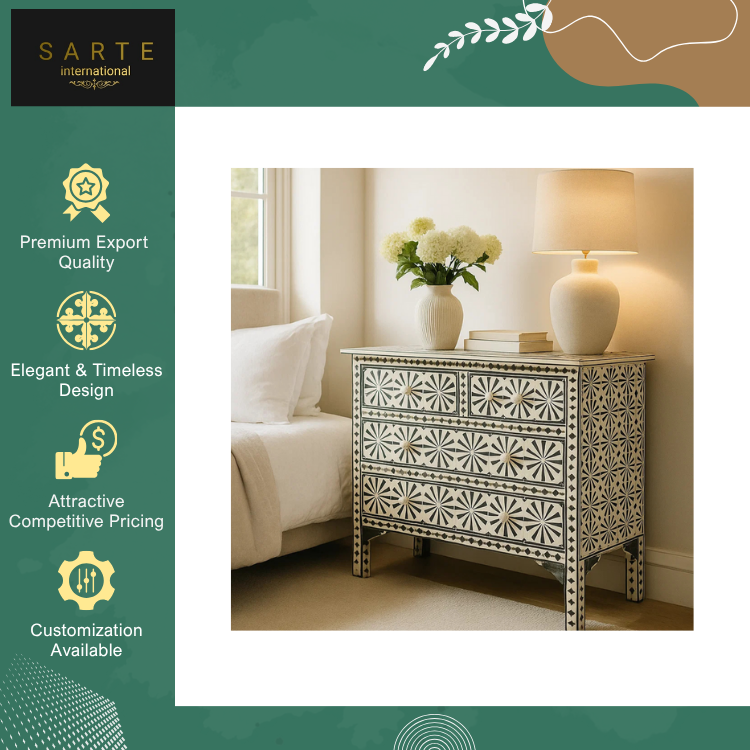 Bulk Supply Premium Handcrafted Artistic Indian Furniture with Floral Motifs Bone Inlay Chest of Drawers at Low Price