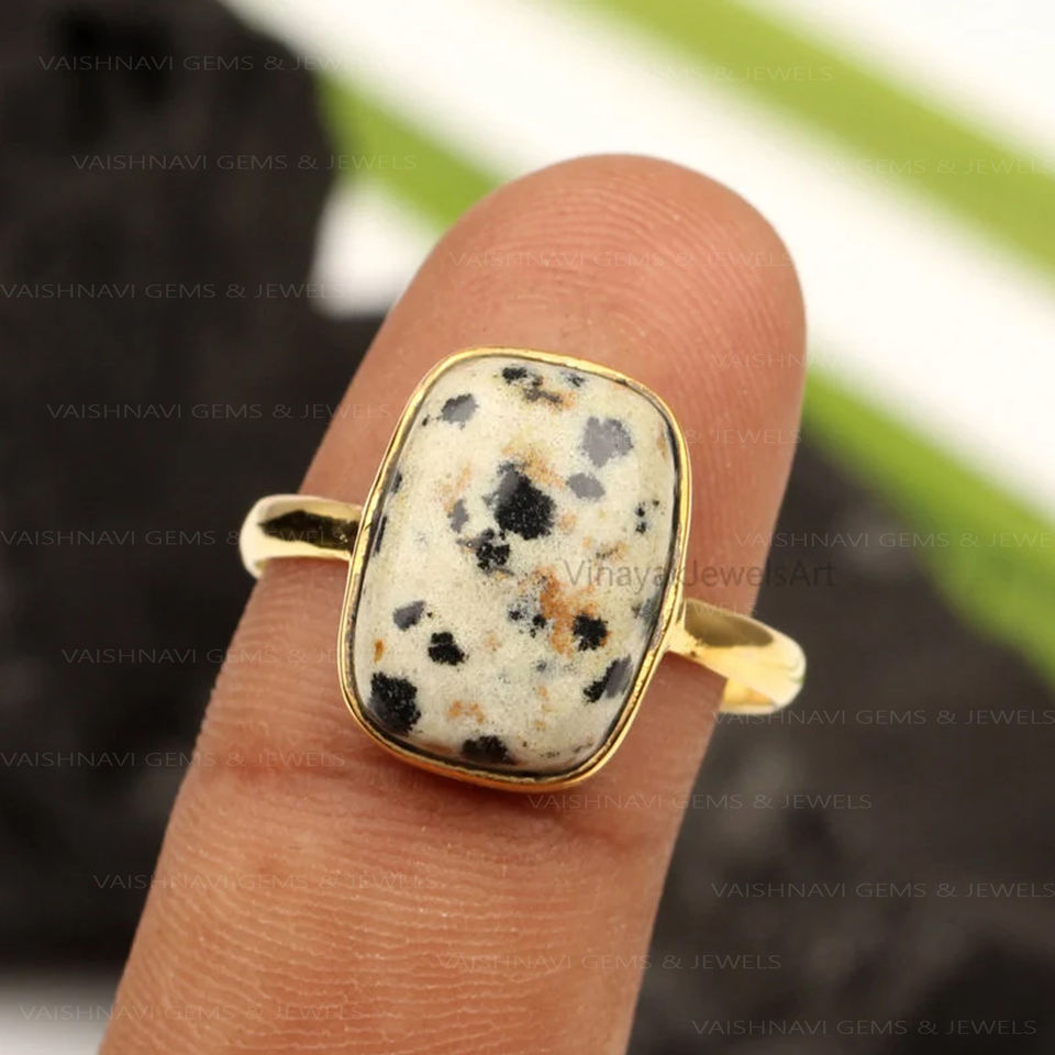 Bulk Wholesale 10x14mm Cushion Dalmatian Jasper Ring 925 Sterling Silver 18K Micron Gold Plated Eternity Vermeil Custom Jewelry