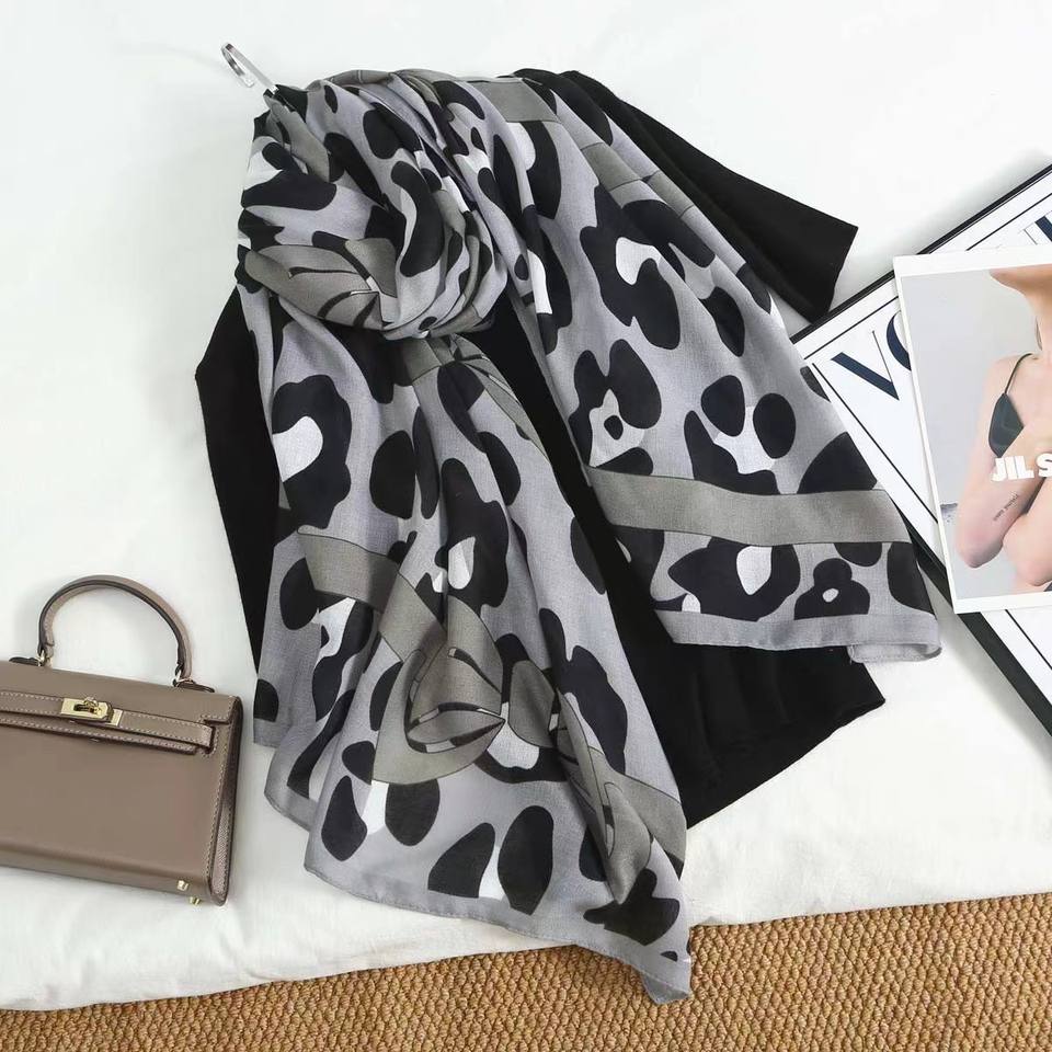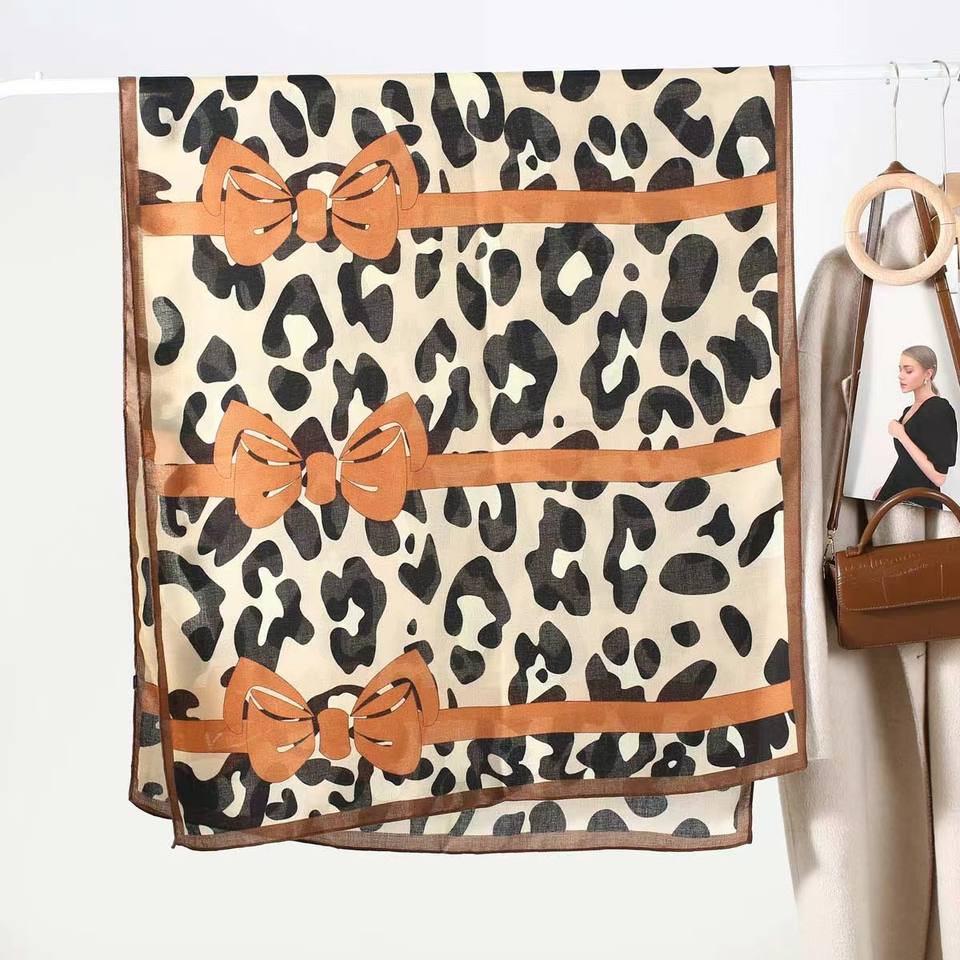 Bulk Wholesale 180*85cm Cute Bows Leopard Printed Long Thin Scarf Shawl 100% Polyester Scarves for Women