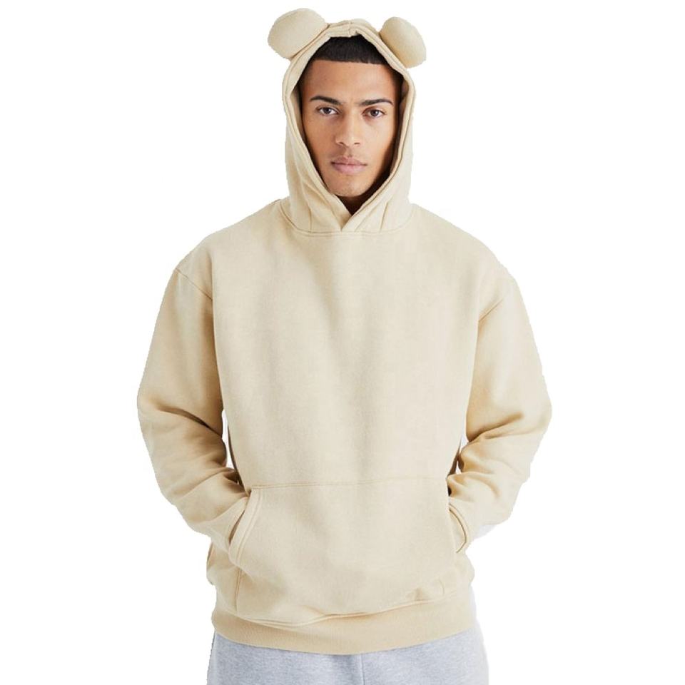 Bulk Wholesale Blank Fitted Casual Cute Jumper Hoodie Gym Trendy Plain Black Oversized Padded Bear Ear Hoodie