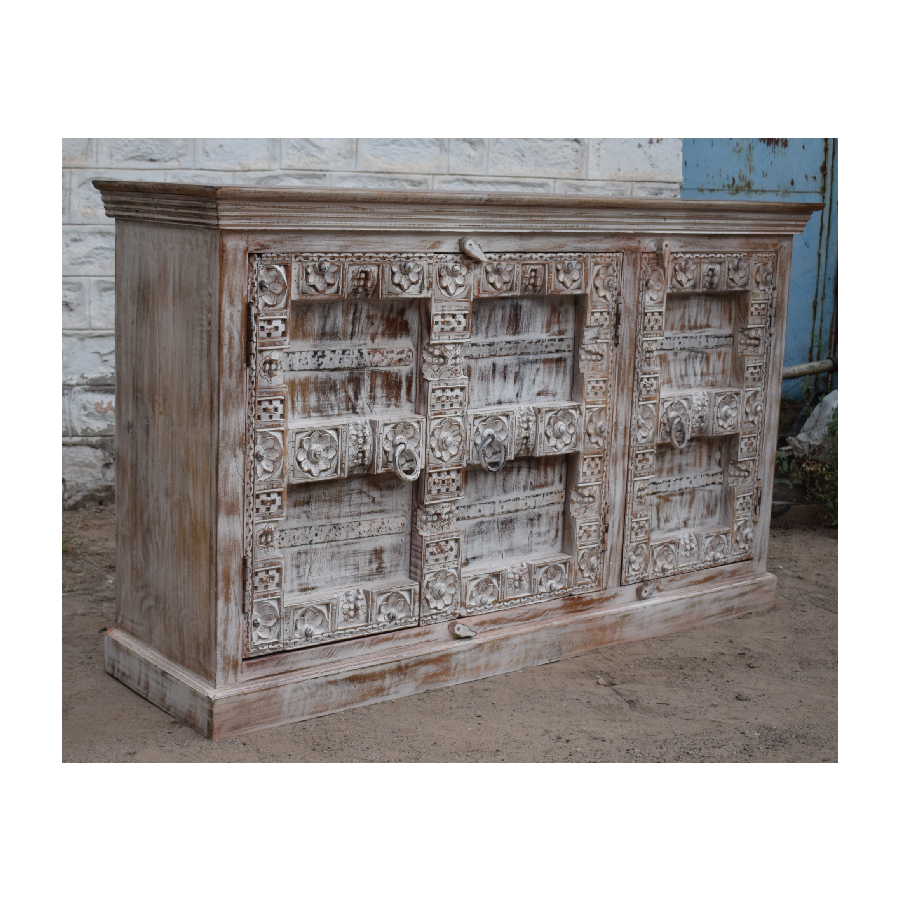 Product Name:Wooden 3 Old Door Carved Cabinet