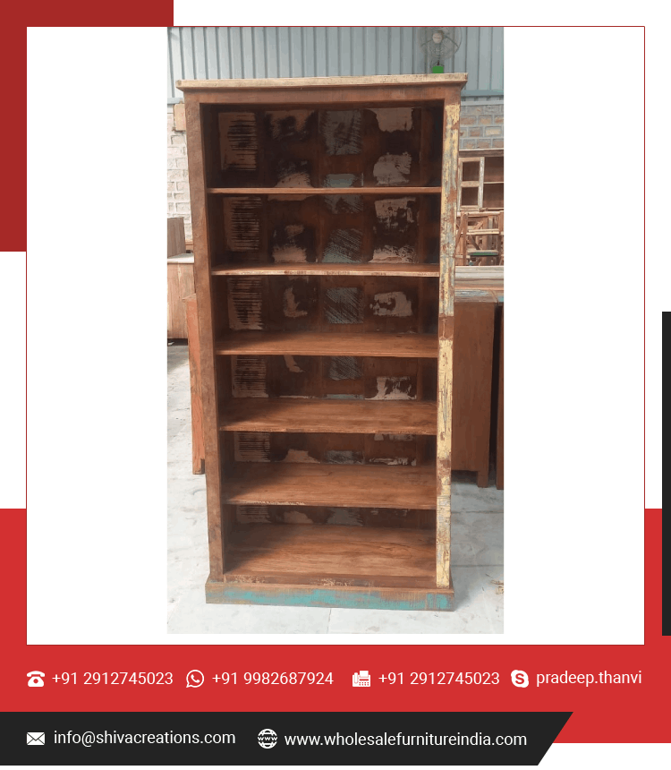 Bulk Wholesale Direct Supplier's Customized Antique Reclaimed Wood Open Bookrack Rustic Vintage Boat Bookcase Living Room Bedroom Outdoor Hotel