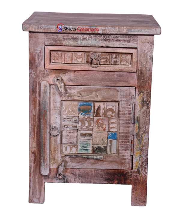 Product name:Boat Reclaimed Wood Carved Panel Bedside Side Table Night Stands