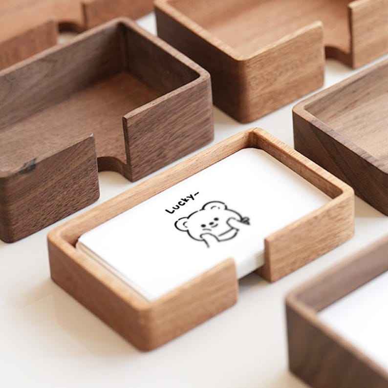 Bulk Wooden Business Card Holder | Solid Wood Desk Card Stand | Office