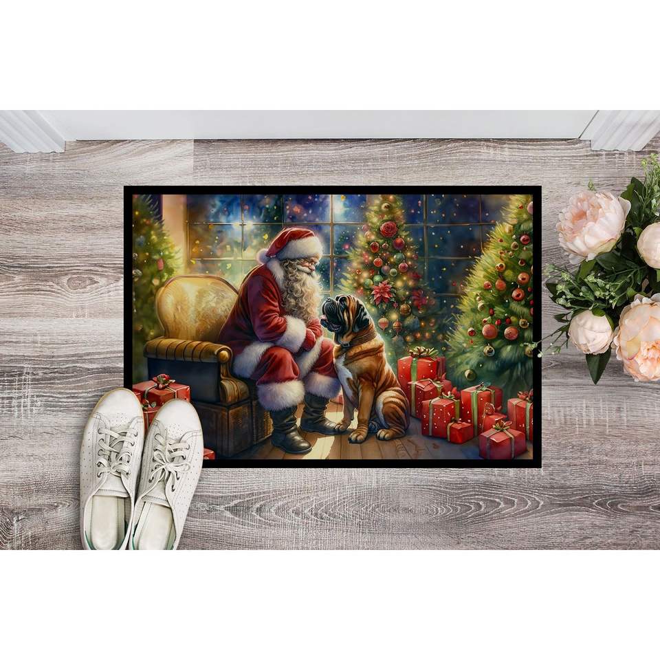 Bullmastiff Santa Claus Doormat Non-Slip Washable Low Pile 24H X 36W Indoor Outdoor Front Door Mat for Entryway