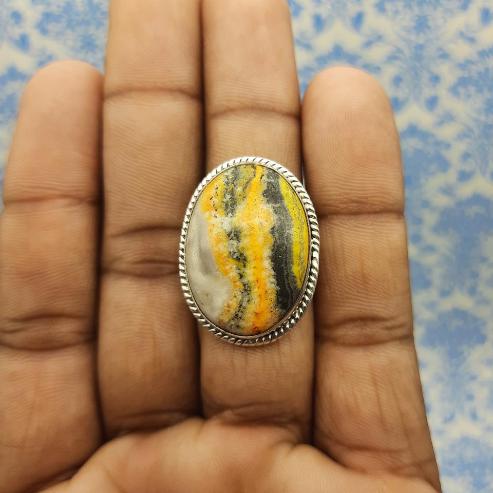 Bumble Bee Jasper Bohemian Silver Ring Solid 925 Silver Artisan Crafted Oval Shape Gemstone Wedding Gift for Women