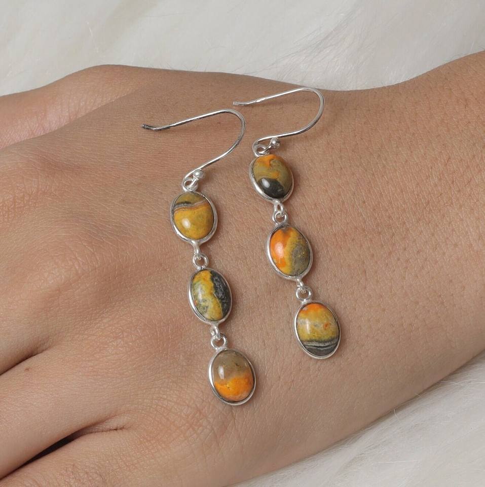 Product Name:Natural Bumble Bee Jasper Gemstone Silver Earrings