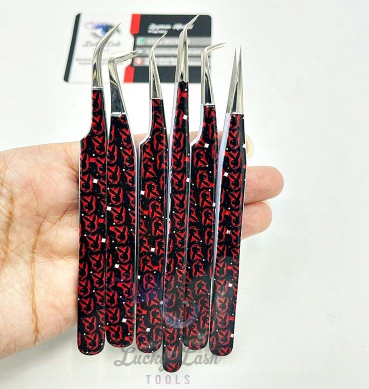 Bunny Design Paper-Coated Tweezers Eyelash Extension Tweezers Set Customized Label Different Shapes Lash Tools Eyelash Tweezers