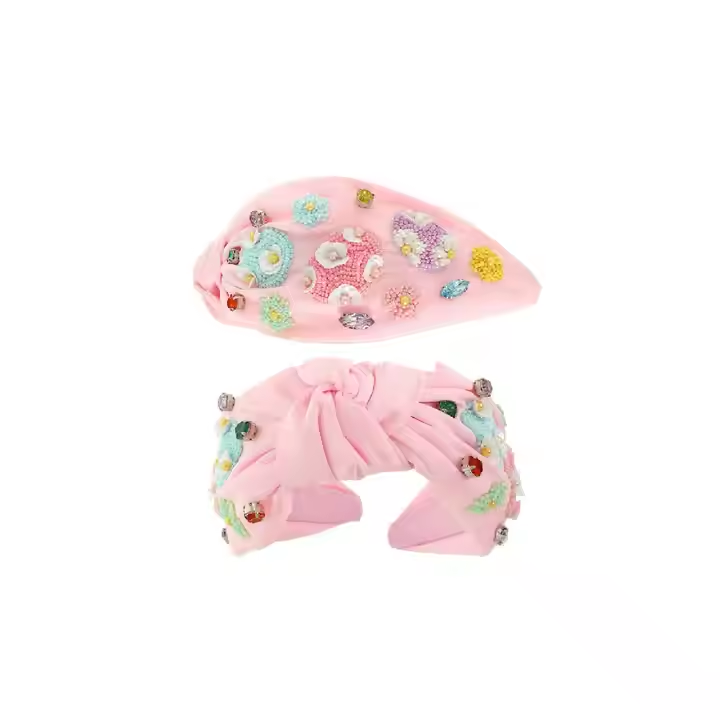 Bunny Rabbit Easter Headband With Beaded Knot Design Featuring Colorful Seed Beads For Girls On Holiday Festive Occasions